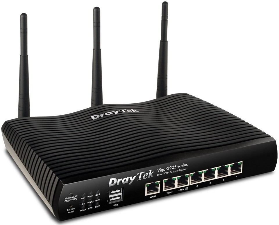 DrayTek Vigor 2925n plus - имеет 2-порта WAN, которые могут осуществлять между собой балансировку и один из которых подключается по высокоскоростным 3G/4G сетям. Маршрутизатор DrayTek Vigor 2925 обладает встроенным брандмауэром и способен организовать надёжную и защищенную сеть в Вашем офисе.